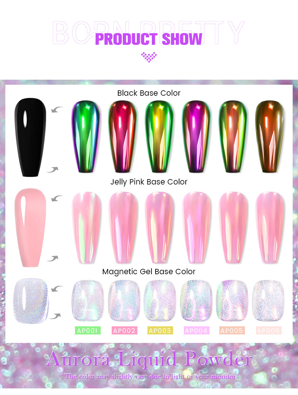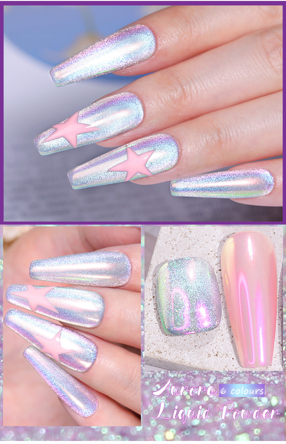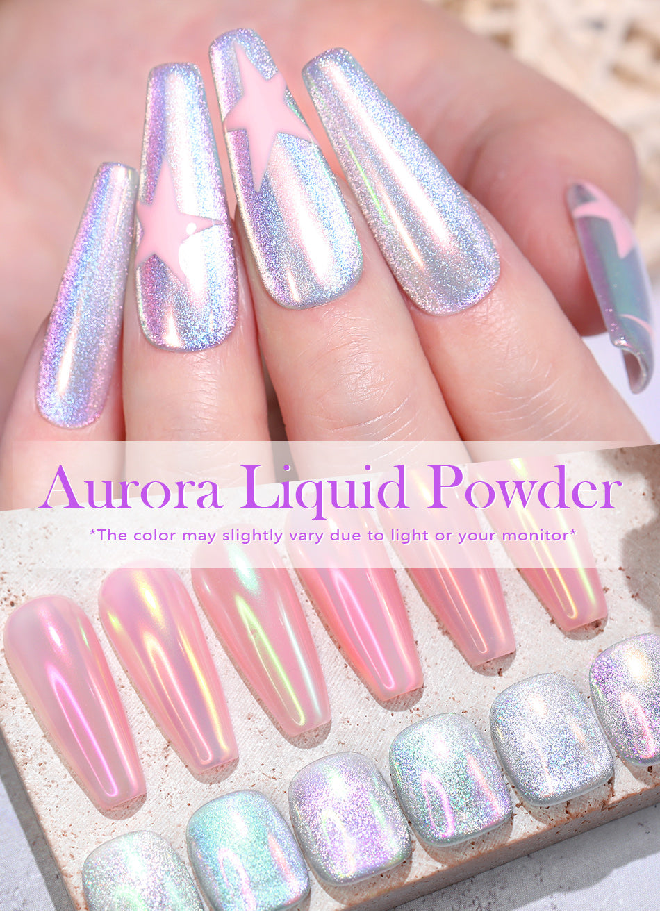 Show off your style with Aurora Liquid Powder! Choose from 6 vibrant shades to create stunning chrome nail art with a sleek, sensational look. So easy to use no pros necessary! Make 'em say 🤩😍😎.